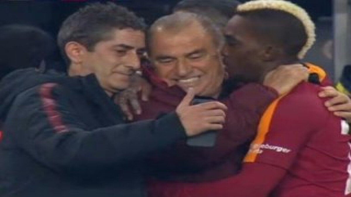 Derbinin yıldızlarından Henry Onyekuru oyundan alınırken, hocası Fatih Terim'e koştu.