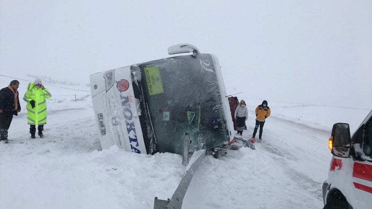 Yakup Sukes idaresindeki 52 AAD 321 plakalı otobüs, Kırıkkale-Samsun karayolu Evliyalı köyü yakınlarında kar yağışının ardından buz tutan yolda kontrolden çıkarak bariyerlere çarpıp refüje devrildi.