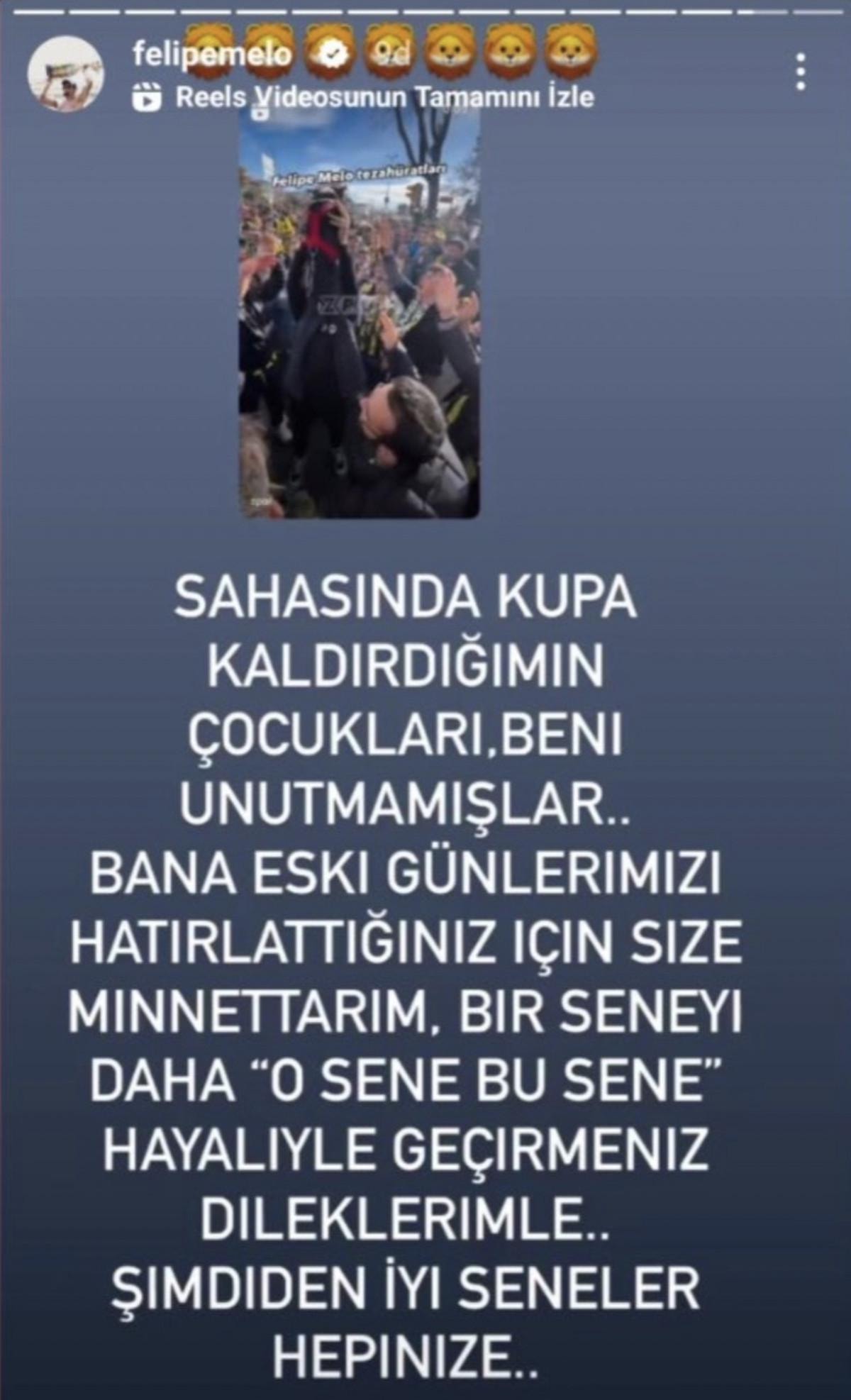 Sarı-lacivertlilerin ev sahipliğinde Şükrü Saraçoğlu Stadyumu'nda oynanan Süper Lig'in 18. hafta karşılaşması öncesinde eski Galatasaraylı Felipe Melo'dan çarpıcı bir paylaşım geldi.