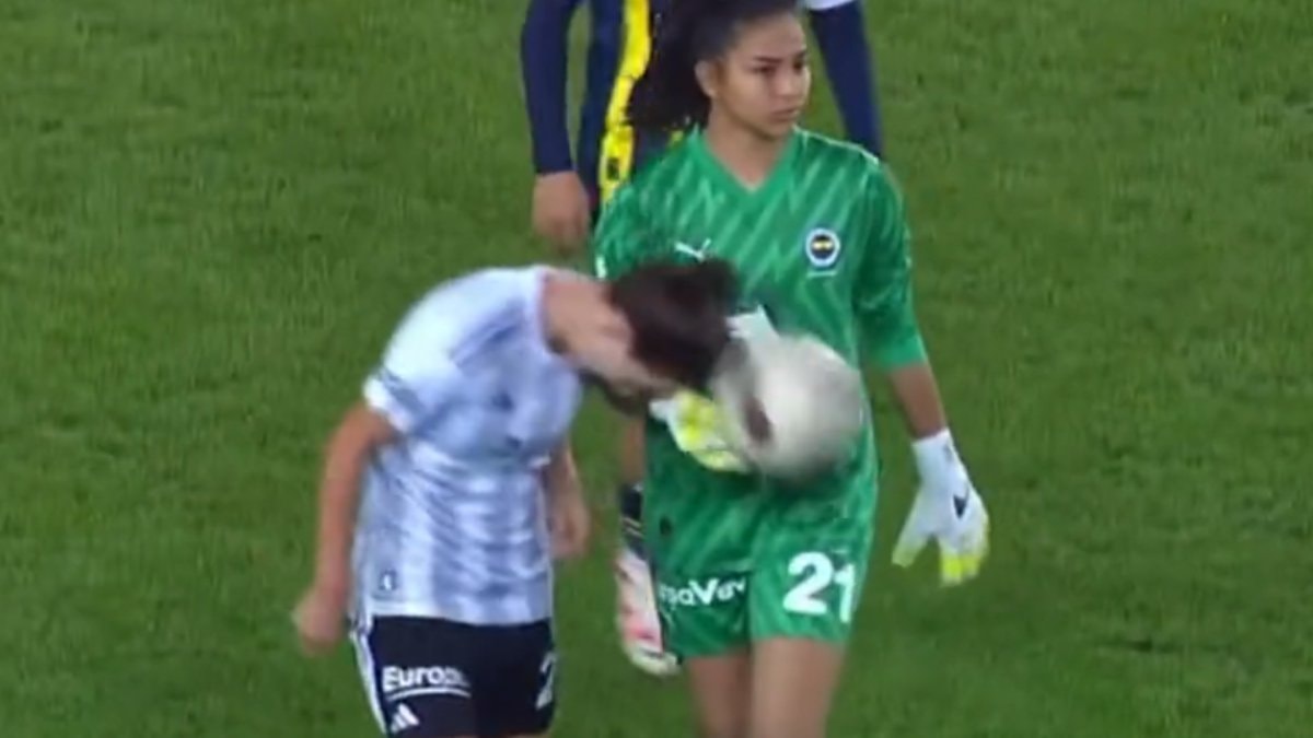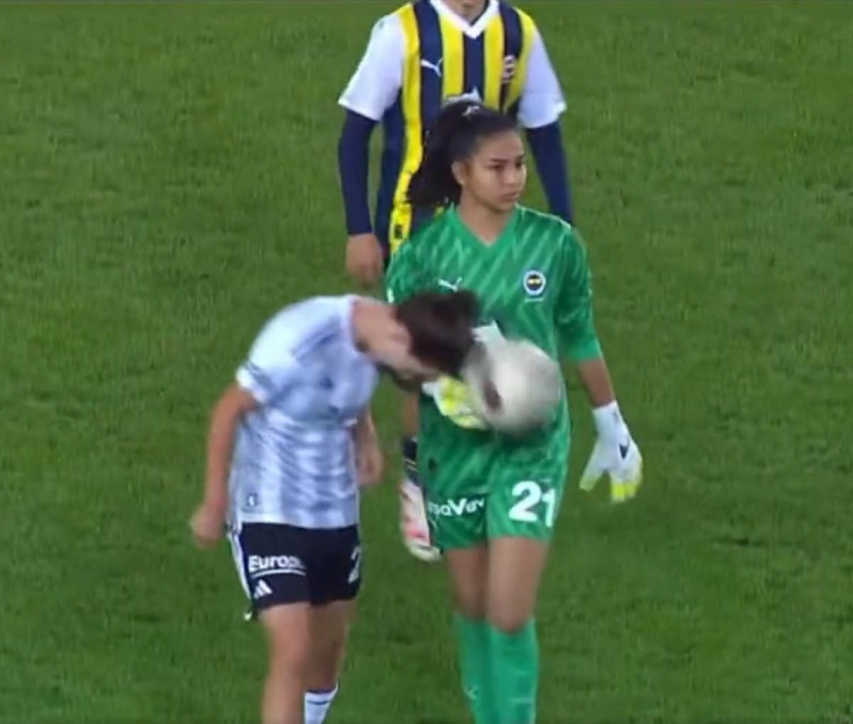 Fenerbahçe kalecisi Göknur Güleryüz degaj yapmak için topu elinde tutarken Kosovalı futbolcu, meşin yuvarlağı kafayla vurarak önüne aldı, ardından da şutunu çekip ağları sarstı.