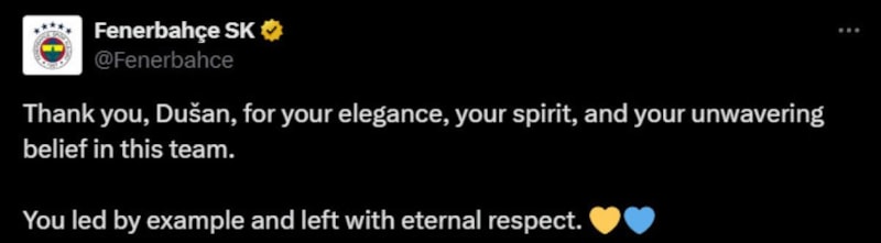 Zarafetin, ruhun ve bu takıma olan sarsılmaz inancın için teşekkürler Dusan. Takıma örnek oldun ve sonsuz bir saygıyla ayrıldın.