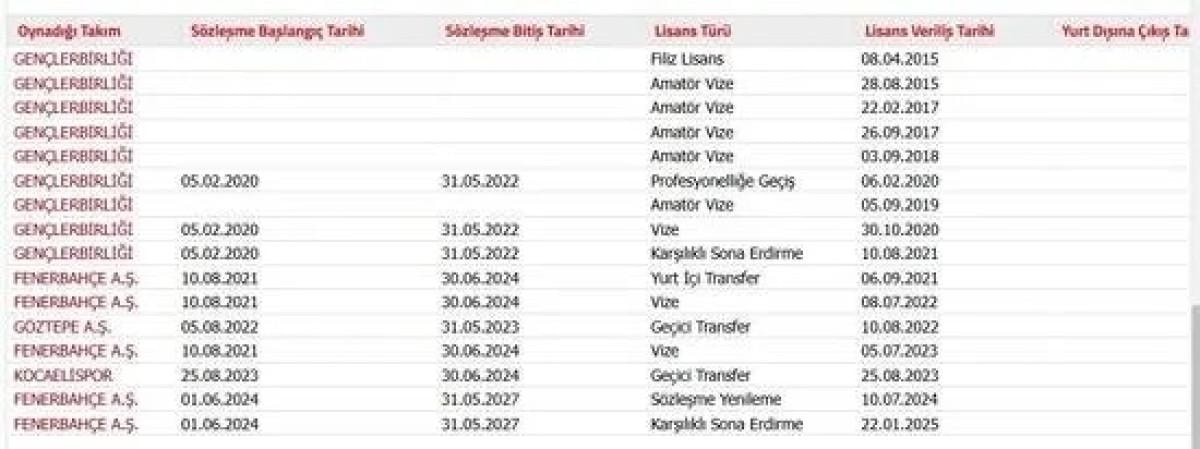 20 yaşındaki genç stoperin Fenerbahçe ile sözleşmesi 2027 yılına kadar devam ediyordu.