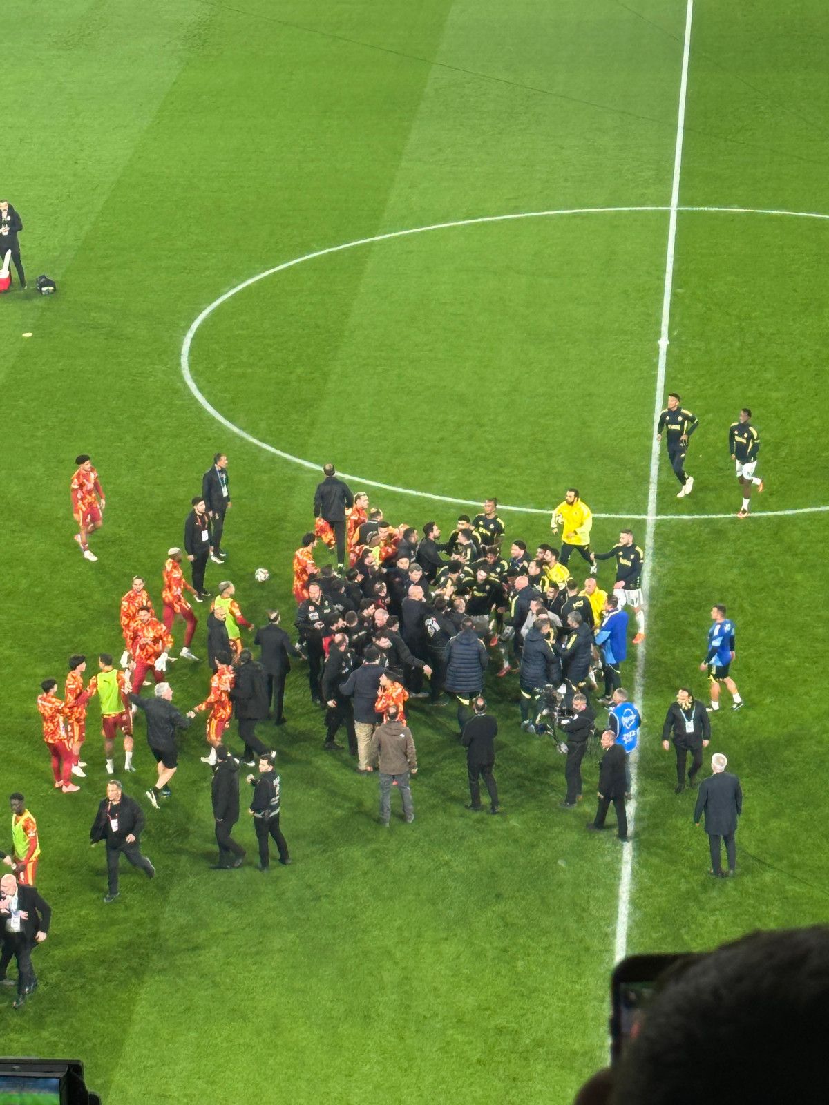 Yaşanan kavga sonrası orta sahada santra noktasına set çekildi ve oyuncular, ısınmak için kendi noktalarına hareket etti.