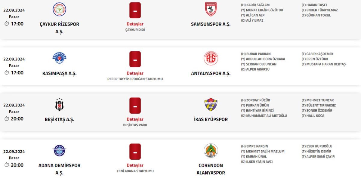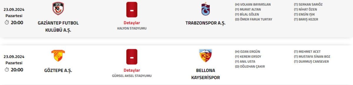 6. HAFTA MAÇLARININ HAKEMLERİ
