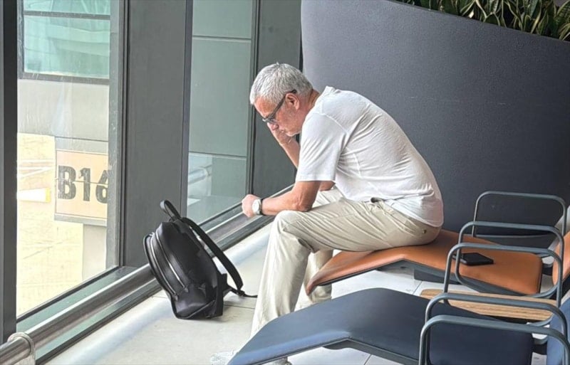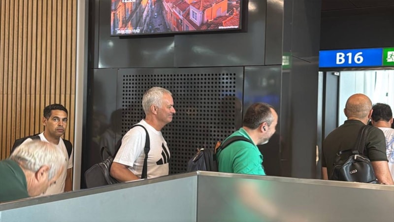 Mourinho'nun havalimanında tek başına olduğu görüldü.