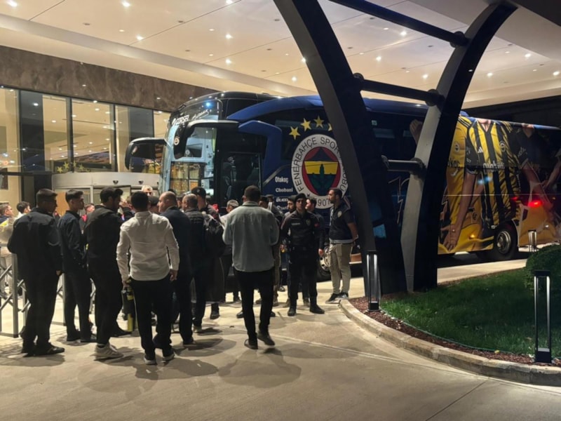 Sarı-lacivertli kafile, Gaziantep Havalimanı'ndan kamp yapacağı otele giderken otel önünde toplanan taraftarlar, takımı meşalelerle karşılayarak futbolcular ve teknik direktör Domenico Tedesco'ya destek tezahüratlarında bulundu.