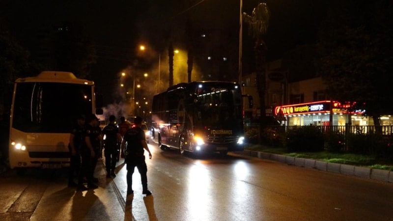 Teknik Direktör Jose Mourinho ve futbolcular otobüse binerek Mersin merkezdeki konaklayacakları otelde hareket etti.