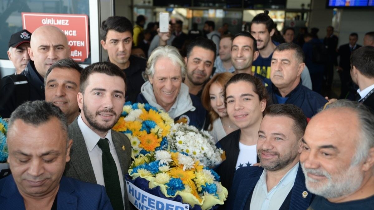 Uçakla kente gelen sarı-lacivertli kafileyi, Antalya Havalimanı çıkışında bir grup taraftar karşıladı. Taraftarlar, teknik direktör Jorge Jesus ile futbolculara sevgi gösterisinde bulundu.