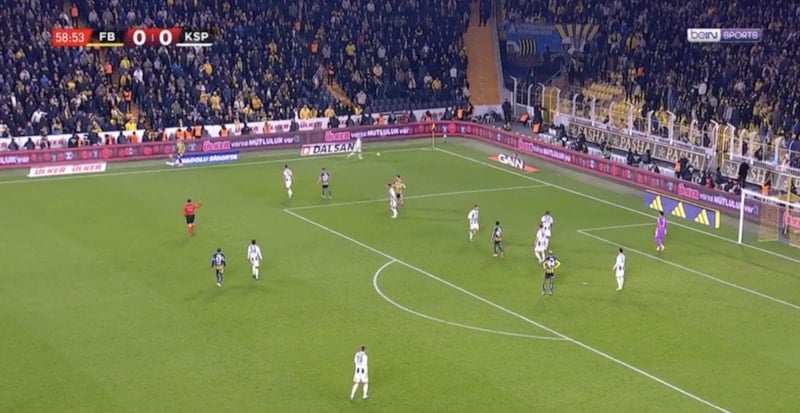 Asensio'nun taç atışıyla oyun alanına gönderdiği topu İsmail Yüksek, doğrudan dışarıya gönderirken oyun alanında olan topu kazanan Fenerbahçeli futbolcular atağa kalktı.