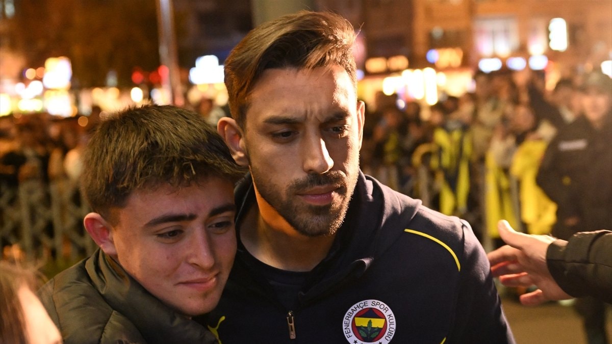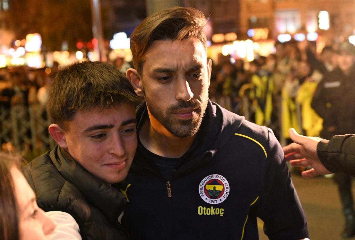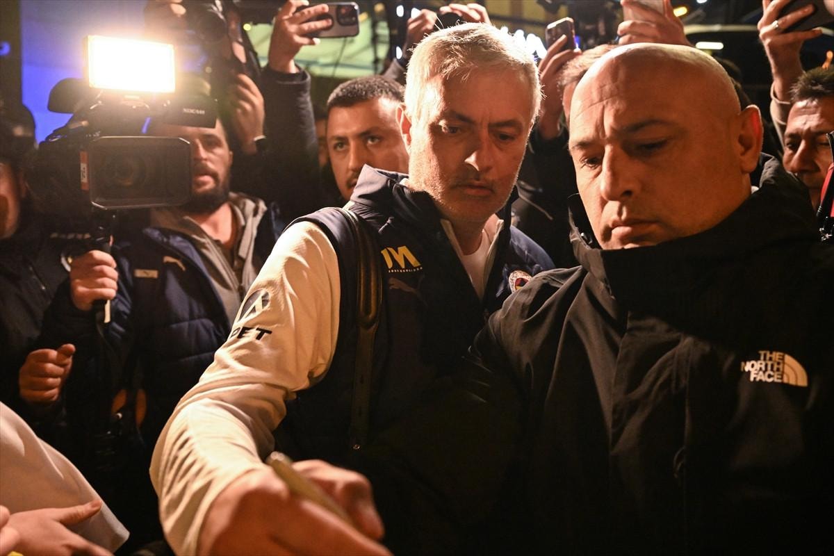 Teknik direktör Jose Mourinho ve yıldız oyuncu İrfan Can Kahveci, otel önünde kendilerini bekleyen taraftarlarla bir araya geldi. Taraftarların fotoğraf taleplerini geri çevirmeyen ikili, forma imzalayarak hayranlarının gönlünü kazandı.