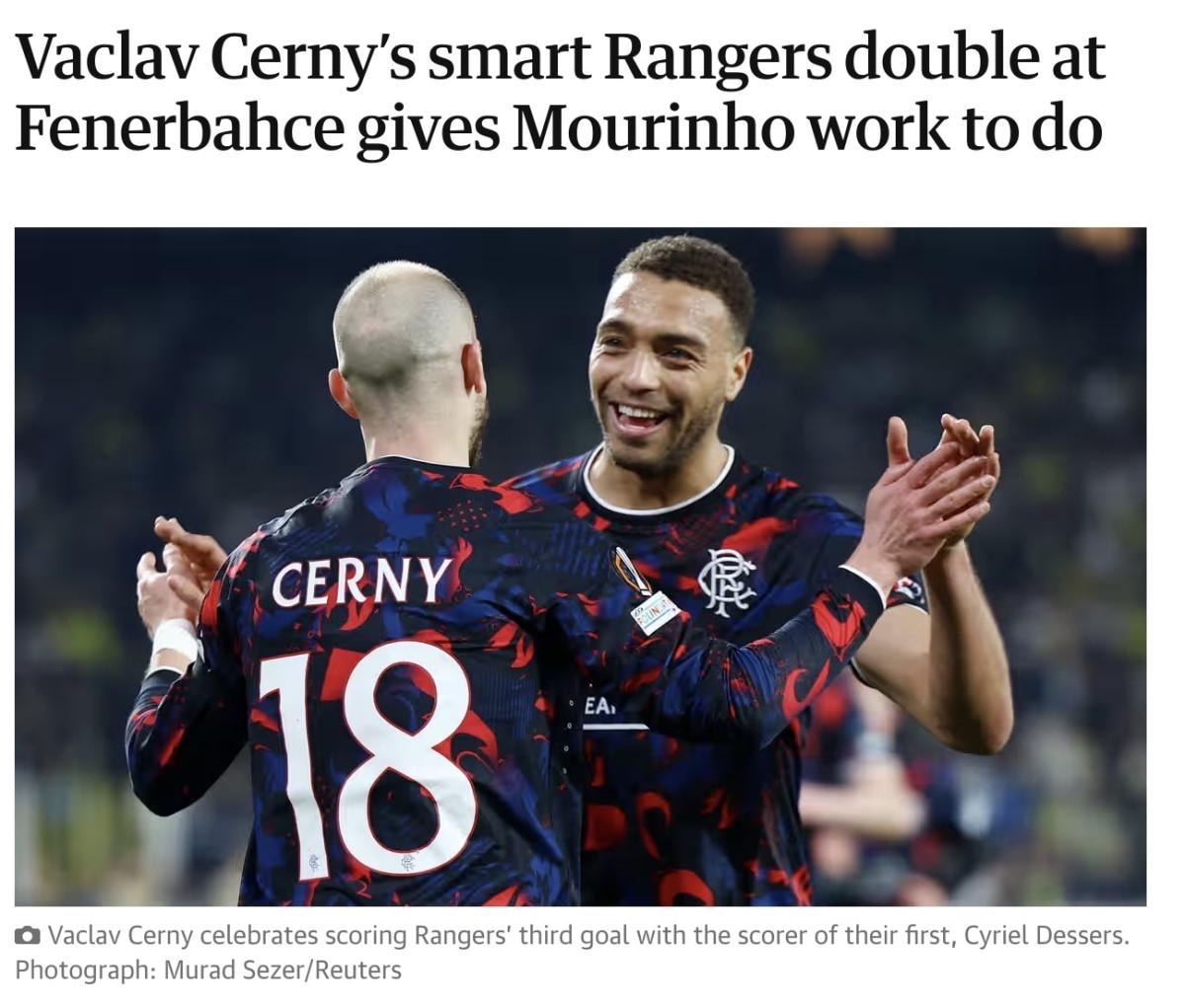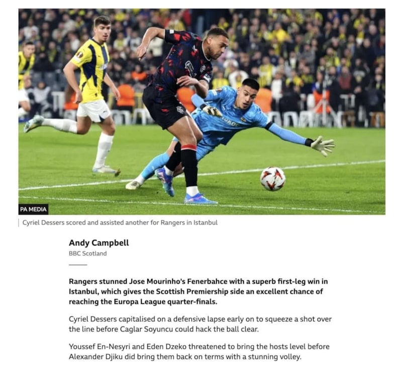 BBC: Acımasız Rangers, Mourinho'nun Fenerbahçesi'ni Avrupa Ligi'nde devirdi.