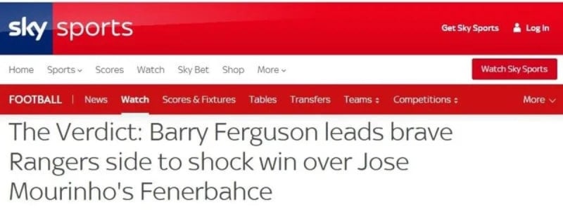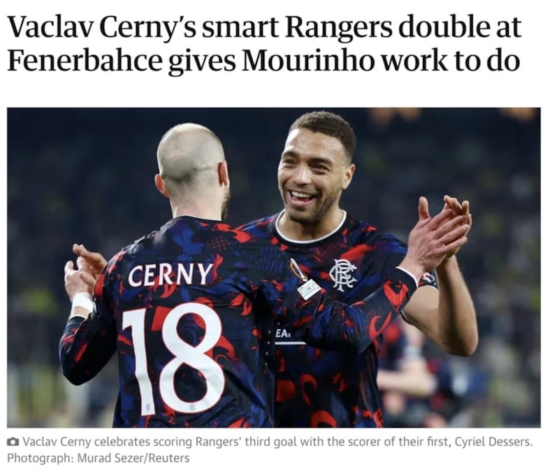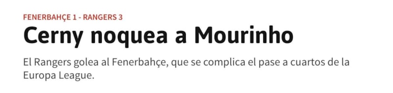 Sarı-lacivertli takım, rakibine 3-1 mağlup oldu. Karşılaşmanın ardından Avrupa basını da başta Fenerbahçe ve Jose Mourinho olmak üzere kritik mücadeleyi manşetlerine taşıdı. İşte Fenerbahçe-Rangers maçı için atılan manşetler…