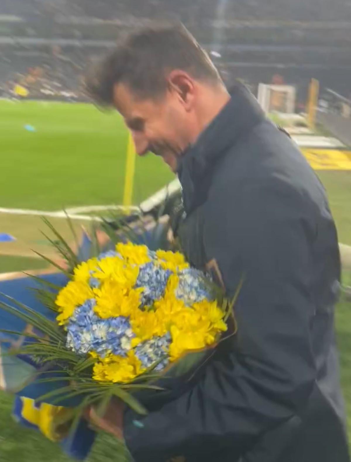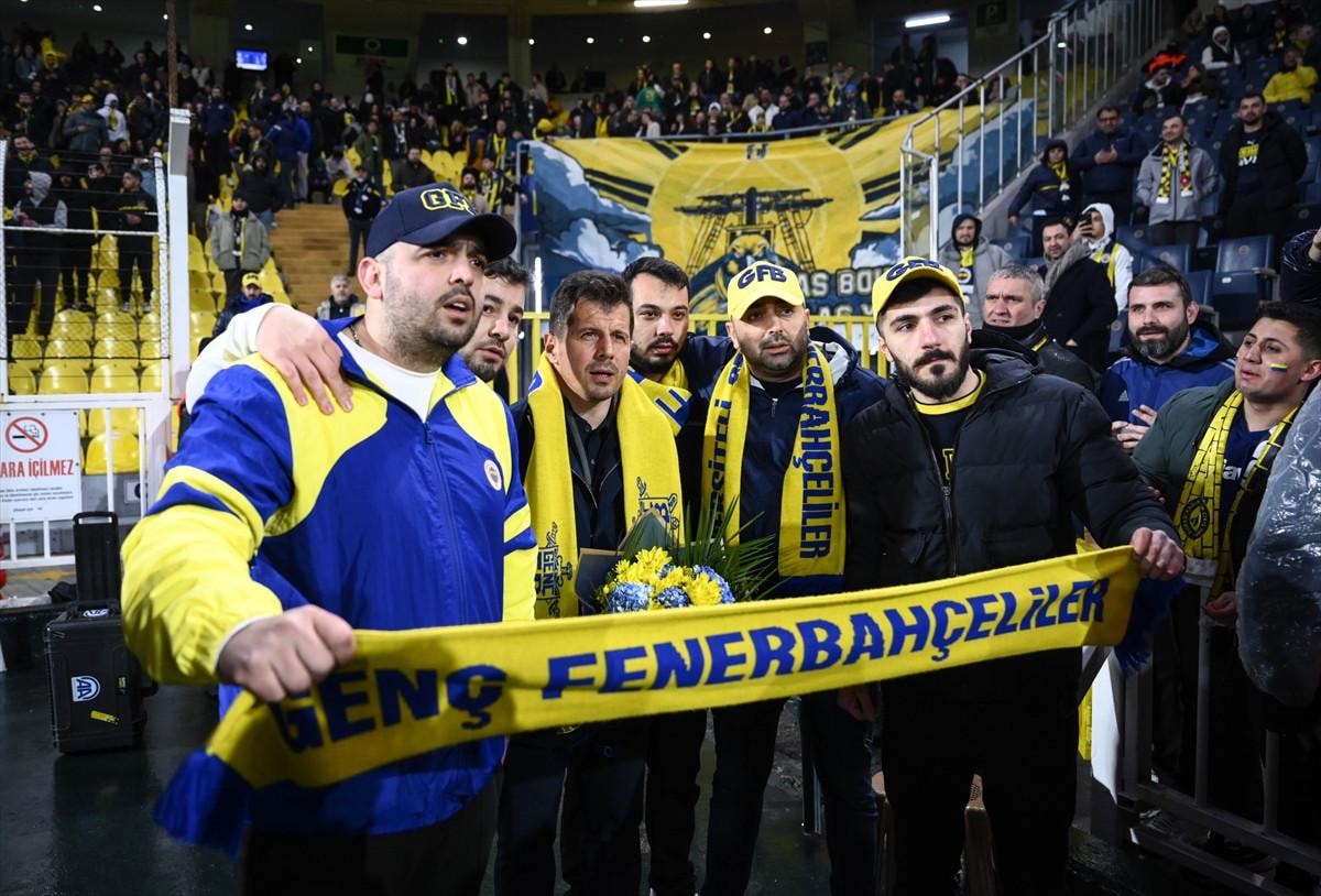 Genç Fenerbahçeliler taraftar grubu, eski futbolcuları ve teknik direktörleri Emre Belözoğlu'na maç öncesinde çiçek verdi.