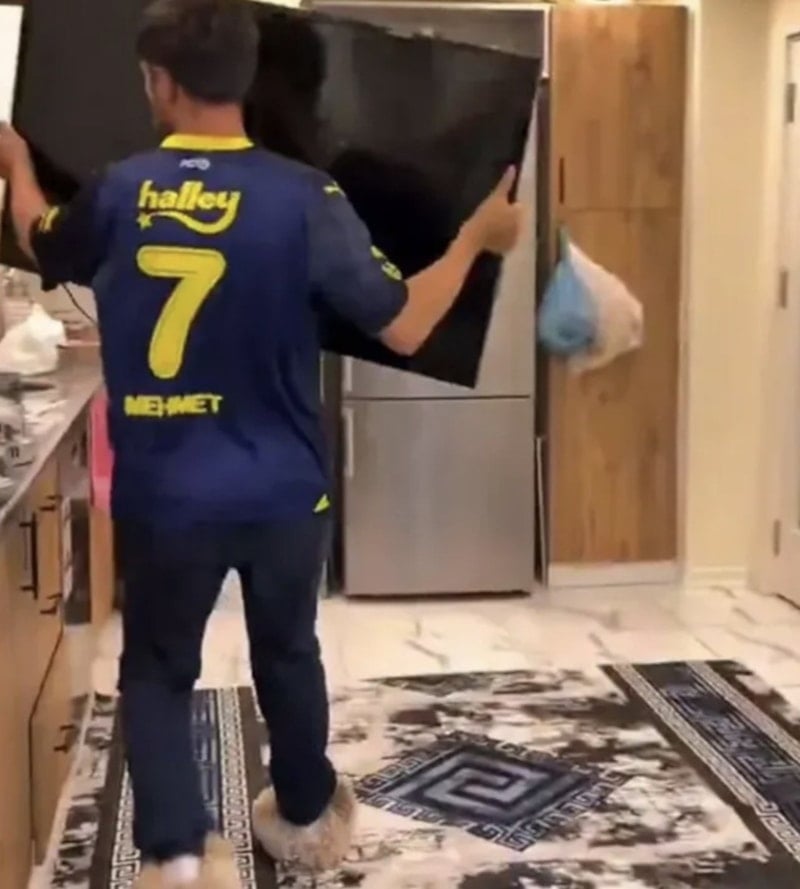 Fenerbahçeli bir taraftar derbi sonucunun ardından sinirlerine hakim olamadı. Taraftar evindeki televizyonu yumruklayarak kırdıktan sonra pencereden attı.