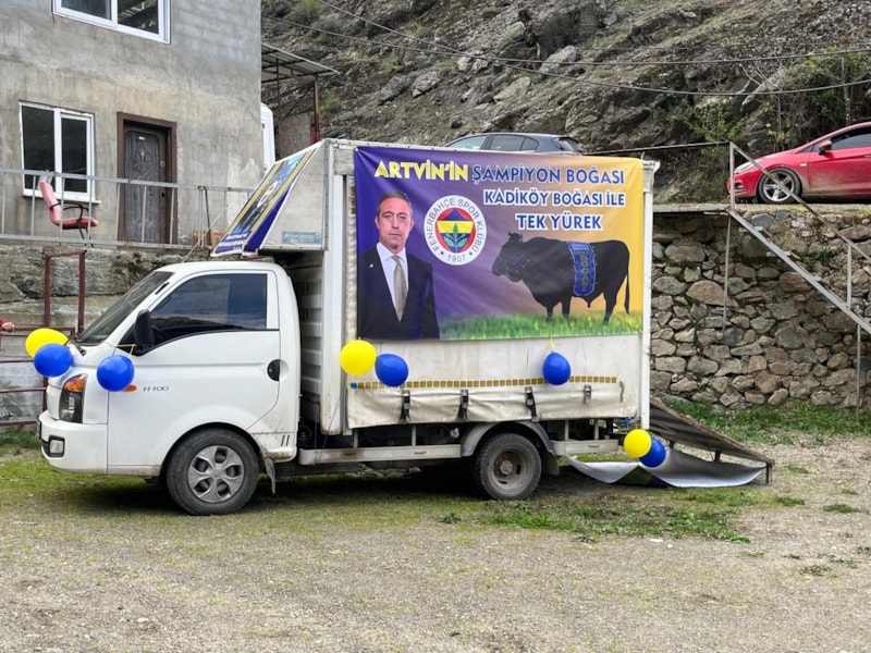 Artvinli boğa yetiştiricisi Ulaş Gülseçkin, geleneksel boğa güreşlerinin olduğu memleketinden Fenerbahçe'ye olan desteğini çok farklı bir şekilde gösteriyor.