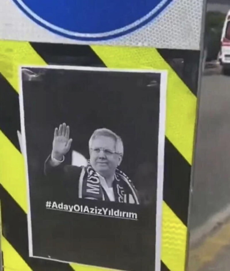Stadyumun önünde bir levhaya Aziz Yıldırım'ın afişinin yapıştırıldığı görüldü. Kadıköy'deki sokakta "Aday ol Aziz Yıldırım" ifadelerinin yer aldığı görsel levhaya bastırıldı.