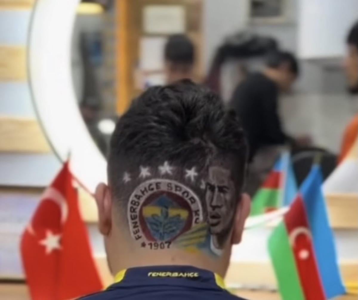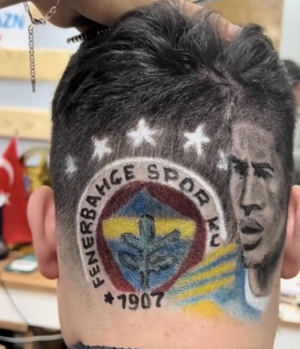 Bir sarı-lacivertli taraftar da 5 yıldızlı logo ve Alex de Souza'nın fotoğrafını saçına kazıttı.