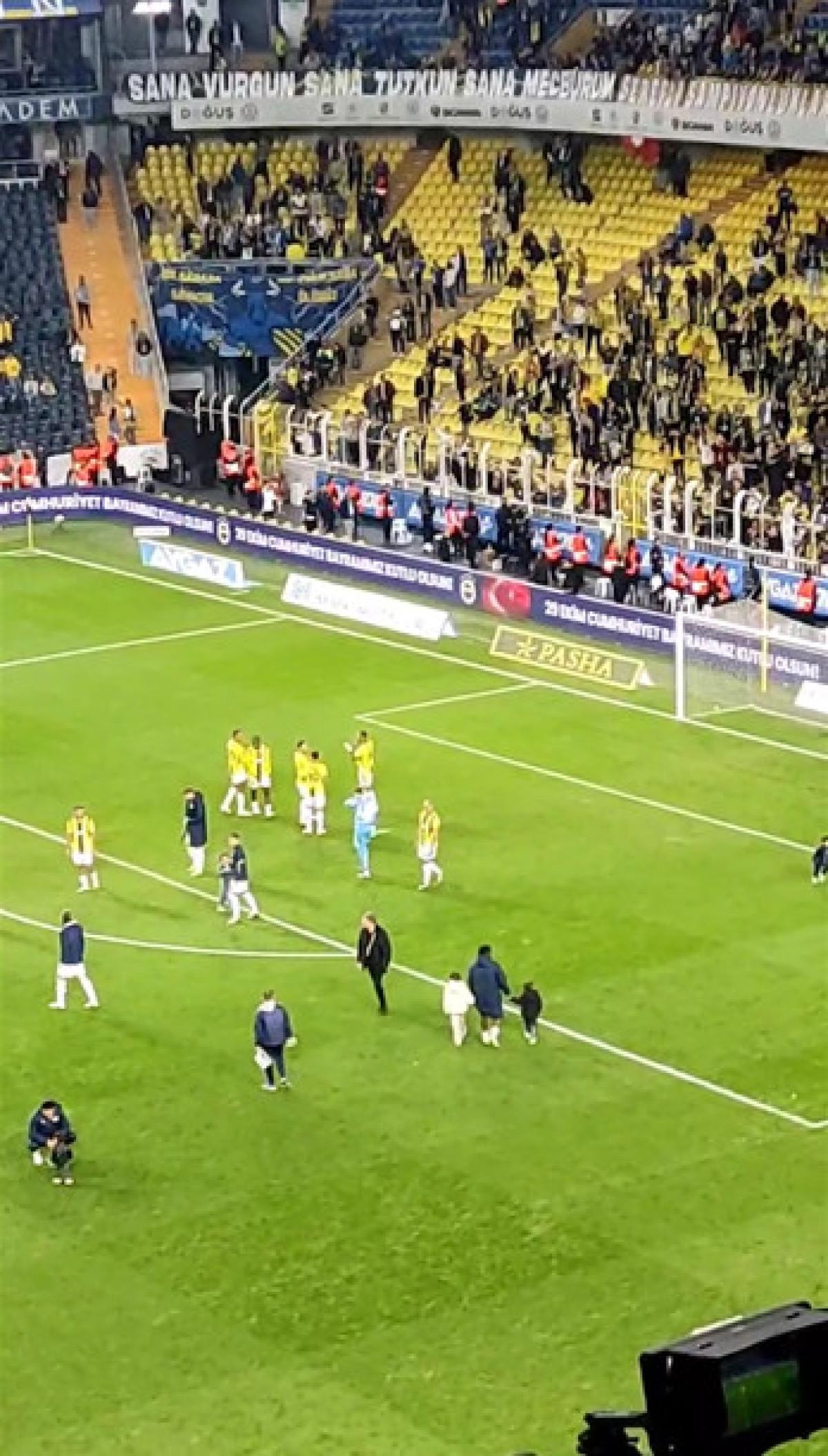Müsabakanın ardından ise Fenerbahçe taraftarı, takımlarını tribüne çağırdı.
