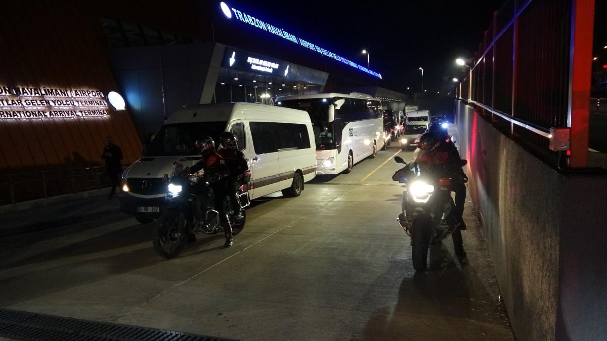 Özel uçak ile Trabzon Havalimanı'na gelen Fenerbahçe kafilesi, polis kordonu altında dış hatlar gelen yolcu salonundan çıkış yaptı.