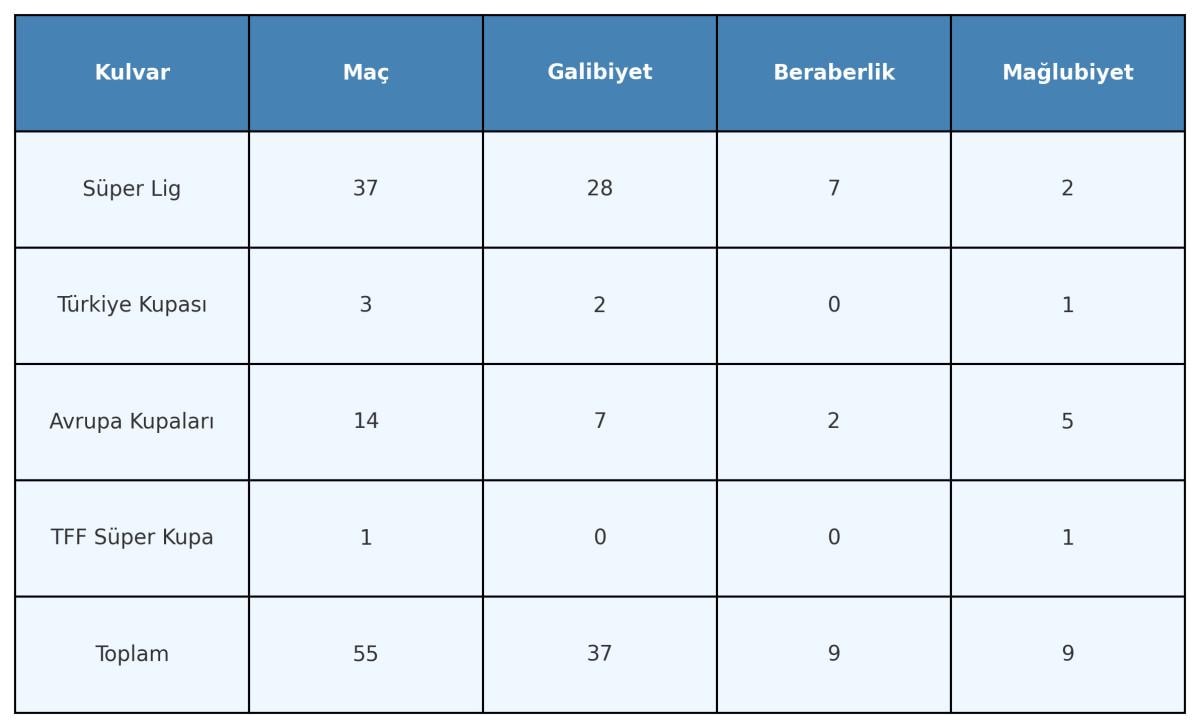 Sarı-lacivertliler, 37 lig, 14 Avrupa, 3 Türkiye Kupası ve 1 de TFF Süper Kupa karşılaşmasında boy gösterdi.