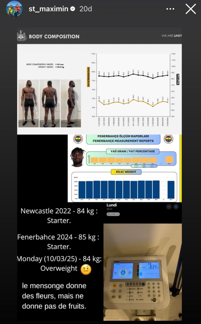 Fenerbahçe'de Rangers maçının kamp kadrosuna alınmayan Allan Saint-Maximin, sosyal medya hesabından, "Beni yıkmak için bundan daha fazlası gerekecek… Yalan asansöre bindiğinde, gerçek merdivenleri çıkar; daha uzun sürer ama sonunda her zaman varır. Eğer Tanrı bizimle ise, kim bize karşı olabilir?" ifadelerinin yer aldığı bir paylaşımda bulunmuştu.