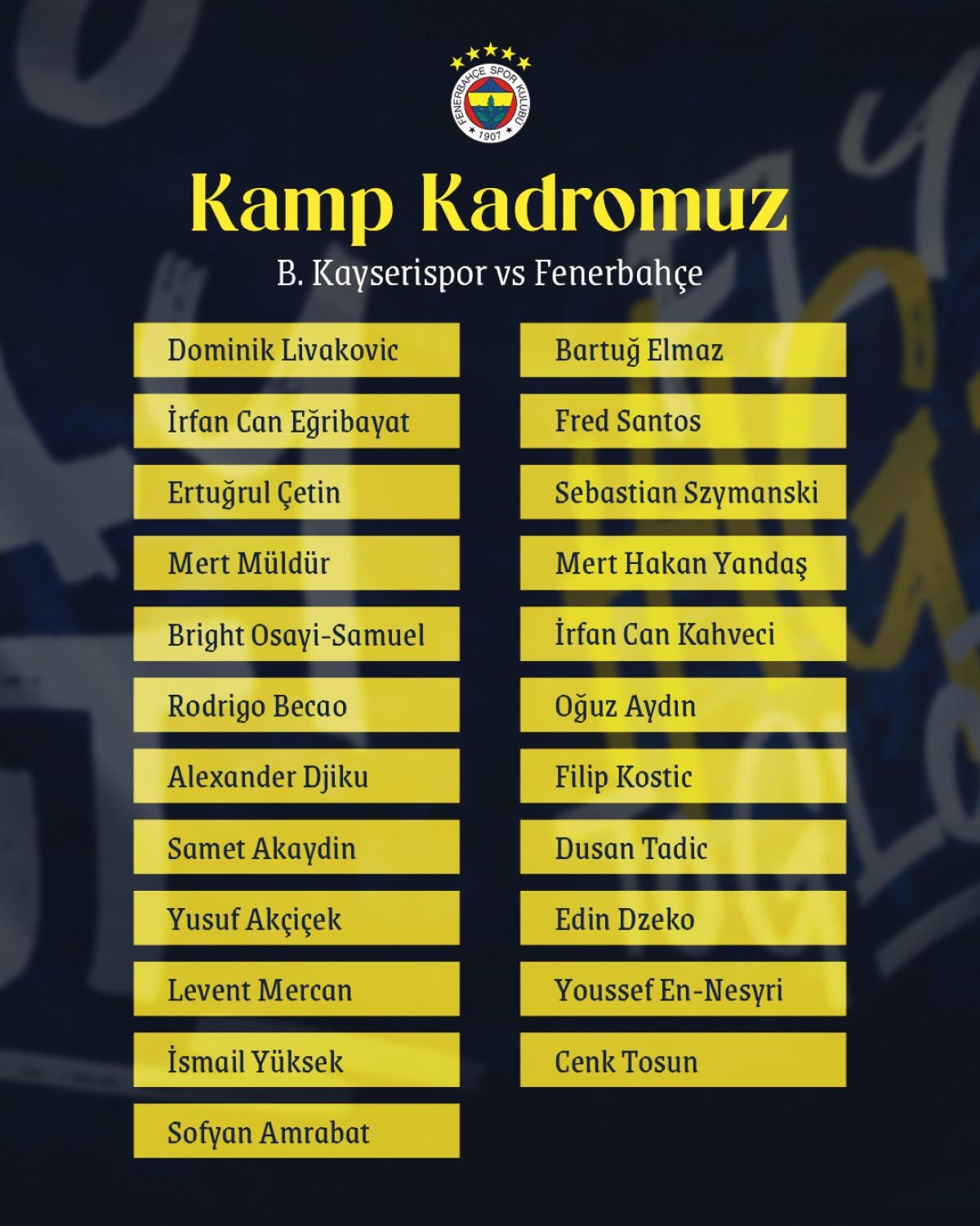 Öte yandan Fenerbahçe'nin Kayserispor maçı kamp kadrosu belli oldu.