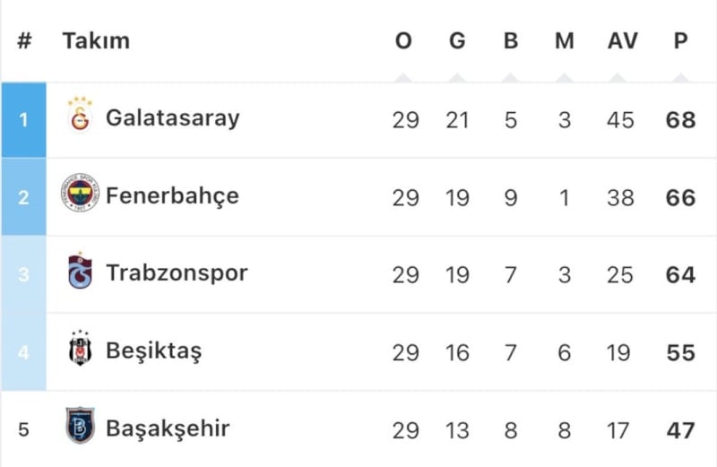 Öte yandan ligde lider durumda bulunan Galatasaray'ın 68 puanı bulunuyor.