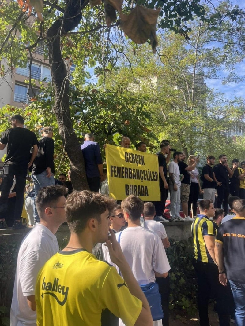 Fenerbahçeli taraftarlar, "Söylesene başkan, ne oldu sözlerin, koskoca Fener'i, Ne hâle getirdin?" sloganları attılar.