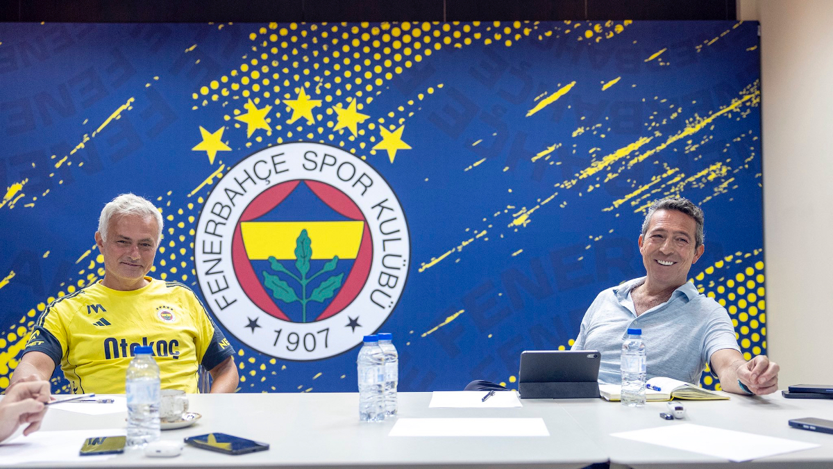“Başkanımız Ali Y. Koç, Teknik Direktörümüz José Mourinho, Futbol Direktörümüz Devin Özek ve Futbol Koordinatörümüz Berke Çelebi transfer süreçlerine ilişkin değerlendirme toplantısı kapsamında Portekiz’de bir araya geldi."