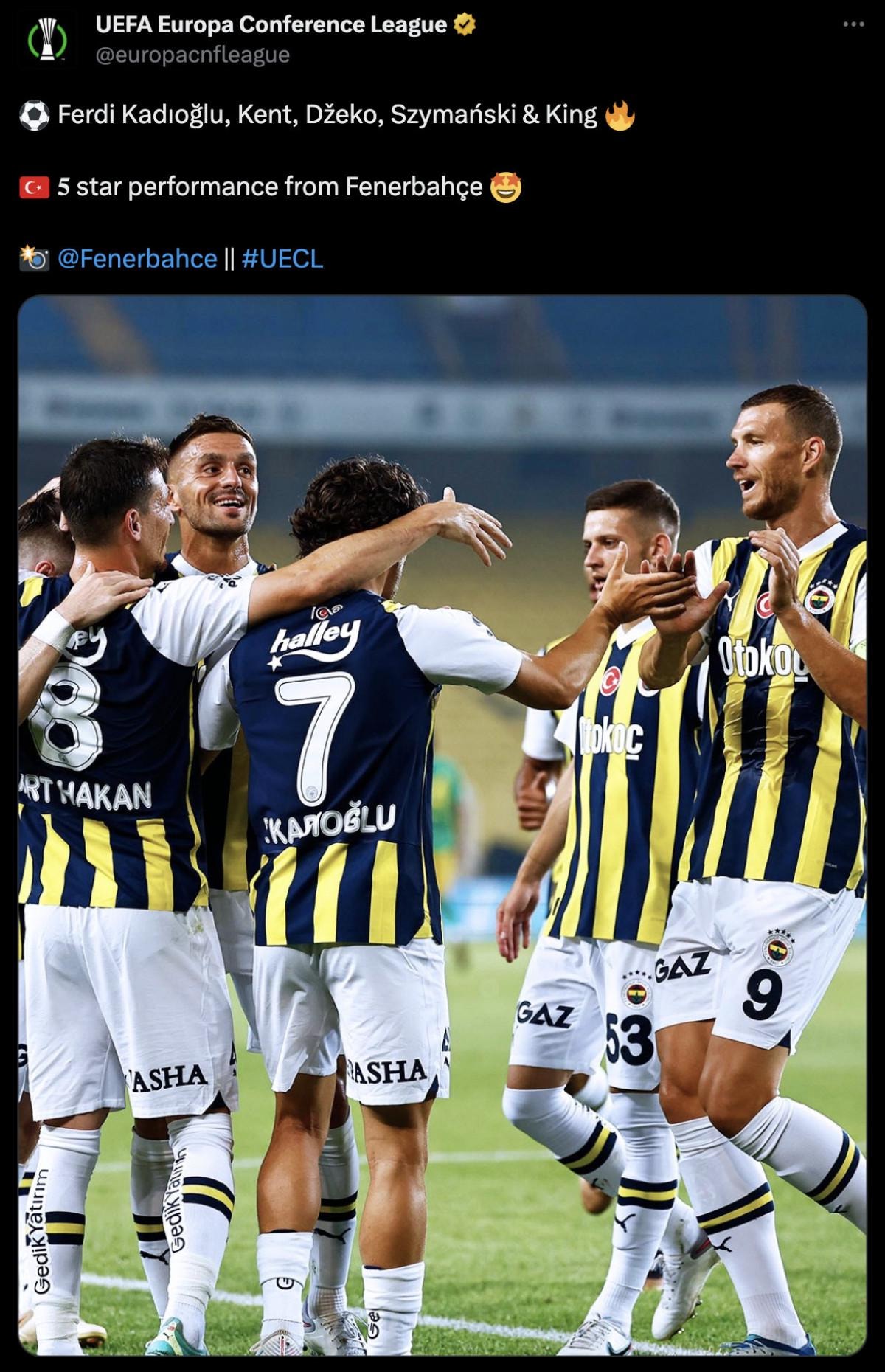 Organizasyonun gönderisinde gol atan futbolculara dikkat çekilirken "5 star performance from Fenerbahçe" notu düşüldü.