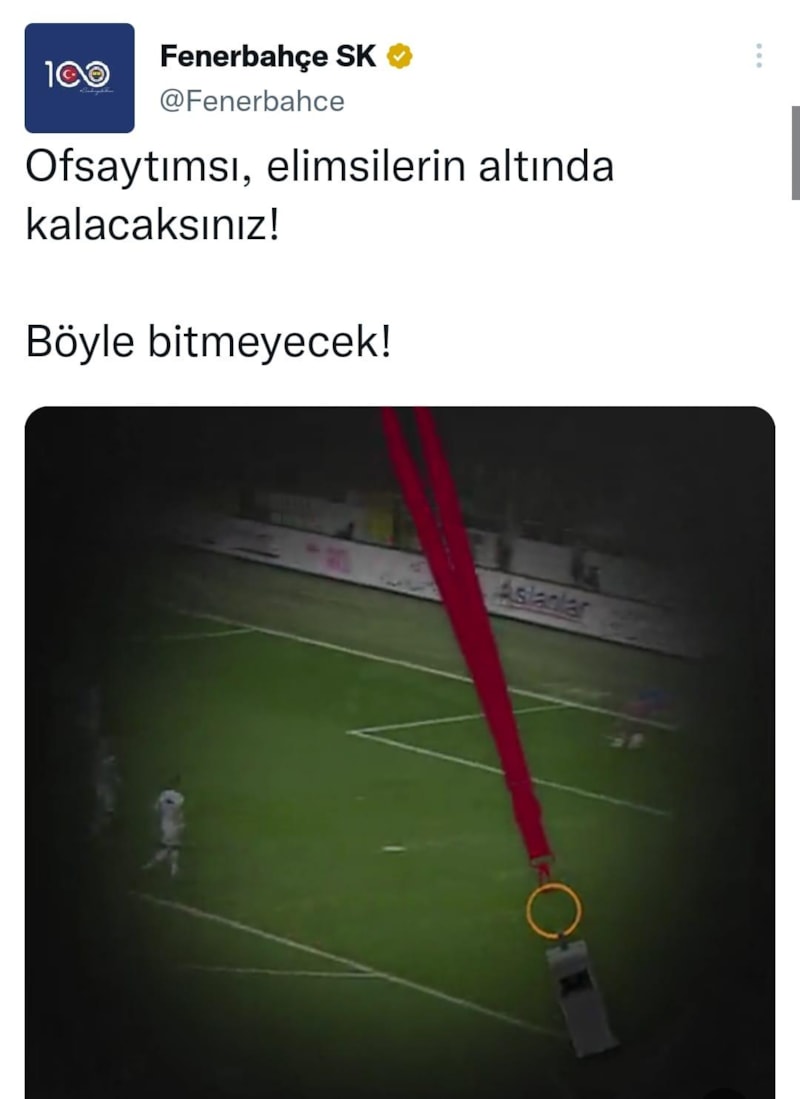 Fenerbahçe paylaşımında sallanan bir düdüğe yer vererek şu ifadeleri kullandı: