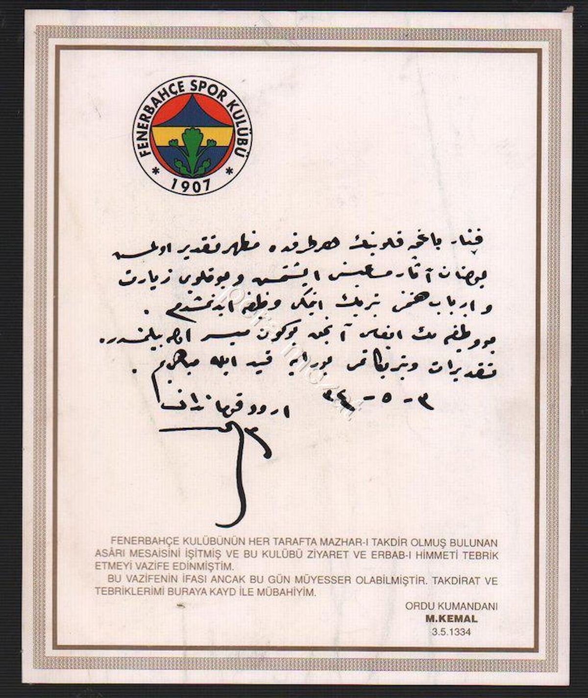 Resmi kuruluşu 1907 olarak kabul edilen Fenerbahçe Spor Kulübü, Türkiye Cumhuriyeti'nin kurucusu Mustafa Kemal Atatürk'ün kulübe 3 Mayıs 1918 tarihindeki ziyareti sebebiyle her yıl 3 Mayıs'ı, aynı zamanda Fenerbahçe'nin kuruluş yıl dönümü olarak kutlamaya başladı.