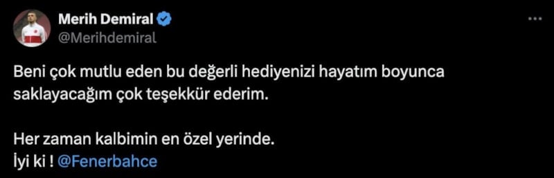 Savunma oyuncusun bu sözleri üzerine Fenerbahçe harekete geçti. Sarı-lacivertliler, Merih'e forma göndererek bir jestte bulundu.