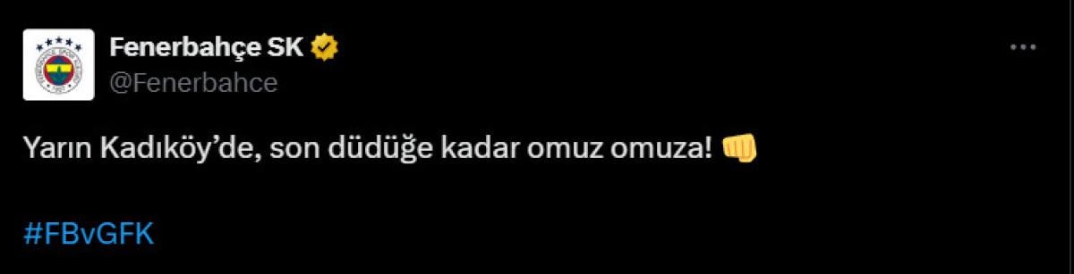 29 puanı bulunan ve ligde ikinci olan Fenerbahçe, ezeli rakibi sarı-kırmızılılar'ın puan kaybetmesinin ardından sosyal medyadan bir paylaşımda bulundu.