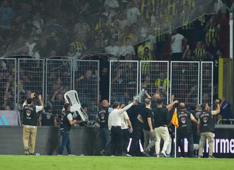 İlk yarısını sarı-lacivertlilerin 2-0 önde kapattığı müsabakanın ikinci yarısının ilk dakikalarında saha karışmıştı.