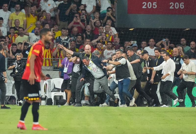 Bir şişenin isabet etmesi ve görevlilerden Fatih Özkan'ın itmesiyle Ali Koç yerde kalırken, daha sonra ev sahibi kulüp görevlileri ile Ali Koç ve korumaları arasında arbede yaşandı.