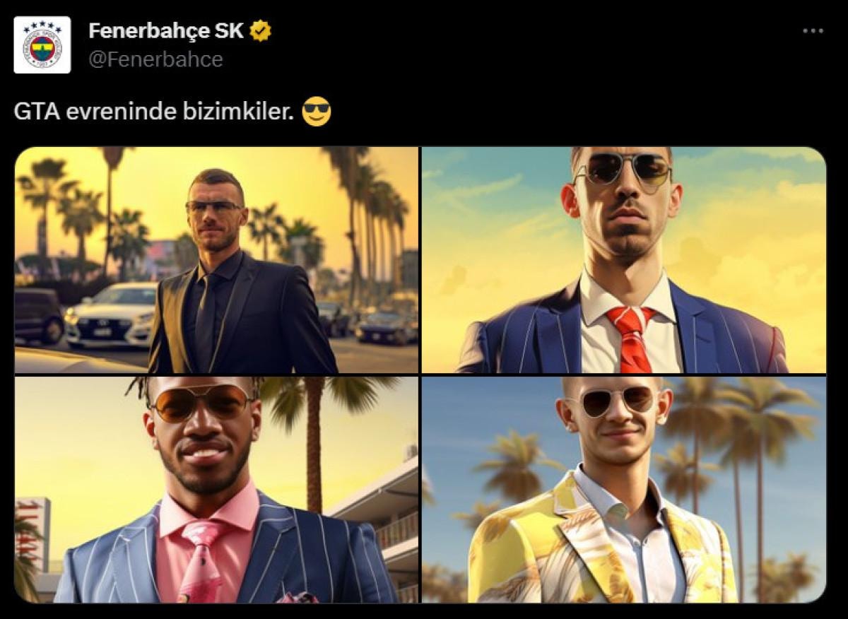 Fenerbahçe; Edin Dzeko, İrfan Can Kahveci, Fred ve Sebastian Szymanski'nin GTA temalı paylaşımını yaptı.