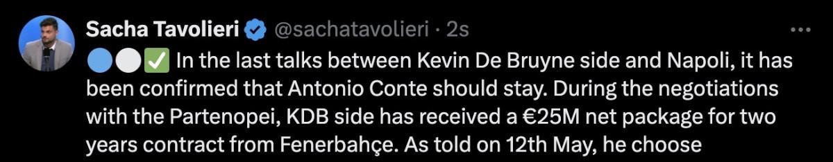 Ancak Kevin de Bruyne'ın yaptığı anlaşmada, Antonio Conte'nin takımda kalma şartının olduğunun altı çizildi.