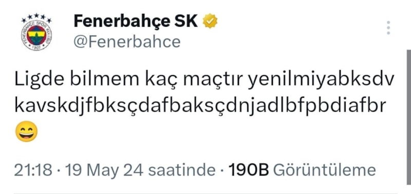 Fenerbahçe, ezeli rakibi Galatasaray'ın 24 maçlık yenilmezlik serisini bitirdi. Sarı-lacivertliler göndermeli paylaşımıyla da taraftarını mest etti.