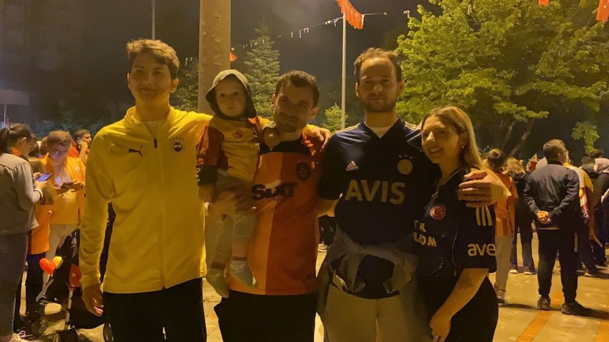 Isparta’da yaşayan Fenerbahçeli Beyza-Mustafa çifti Galatasaraylı arkadaşlarıyla birlikte meydanda şampiyonluk kutlamalarına katıldı.