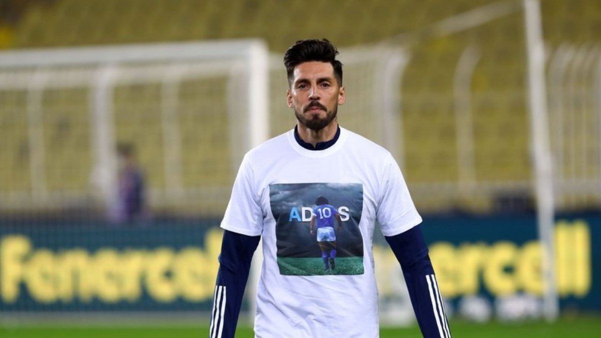 Isınmak için sahaya çıkan sarı-lacivertli futbolcular geçtiğimiz günlerde hayatını kaybeden Arjantinli efsane Maradona'yı unutmadı.