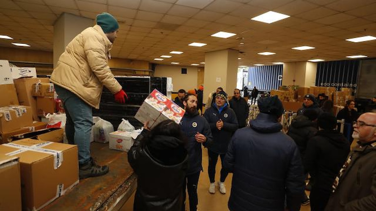Yapılan organizasyonda, Fenerbahçeli futbolcular Mert Hakan Yandaş, Arda Güler ve Serdar Dursun, toplanan yardım malzemelerinin tırlara doldurulmasına yardımcı oldu.