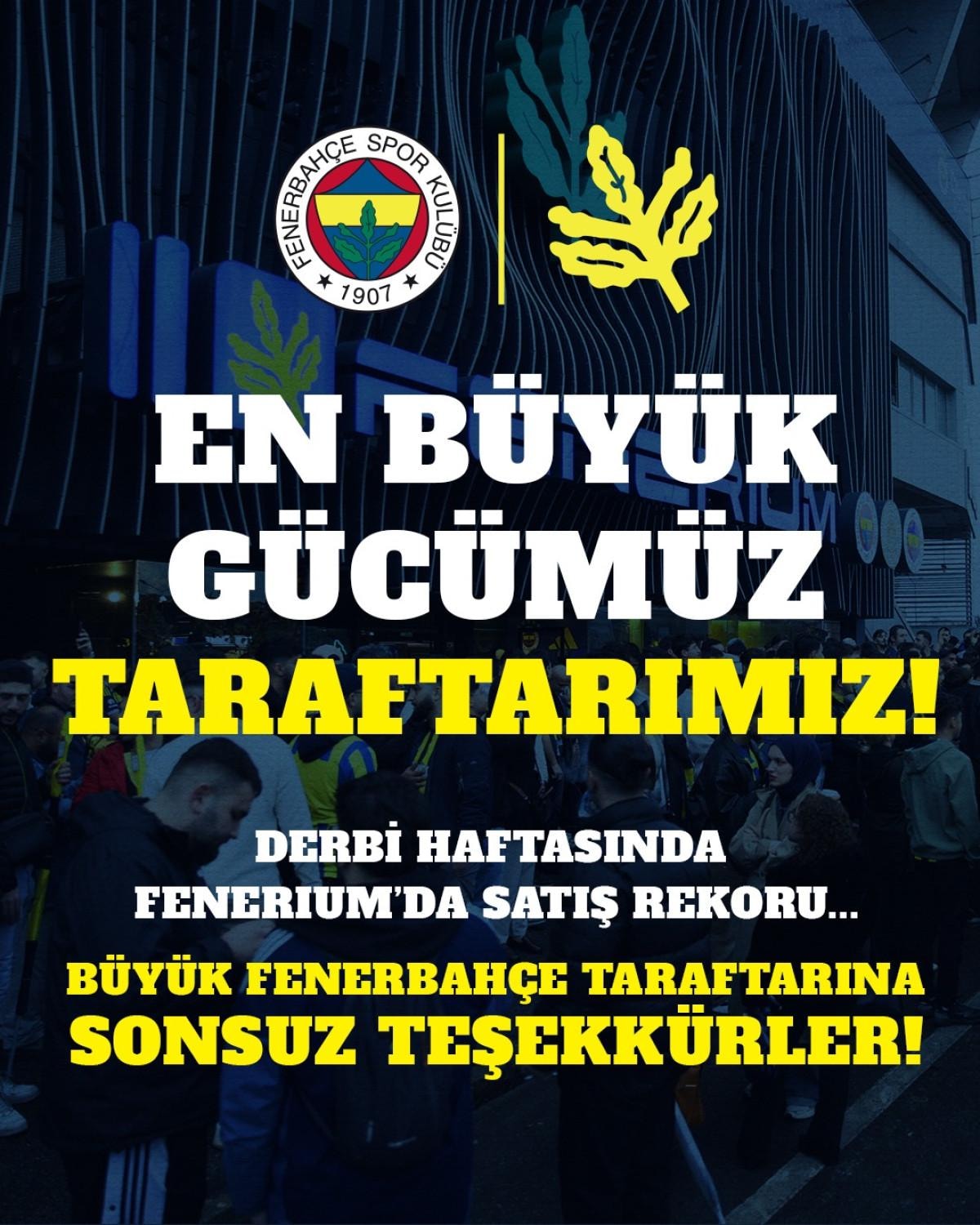 Açıklamaya göre Fenerium mağazaları geçen yılın derbi haftasında 70 milyon liralık satış yaparken, bu sezon rakam iki katını geçerek 143 milyon 762 bin lira oldu.