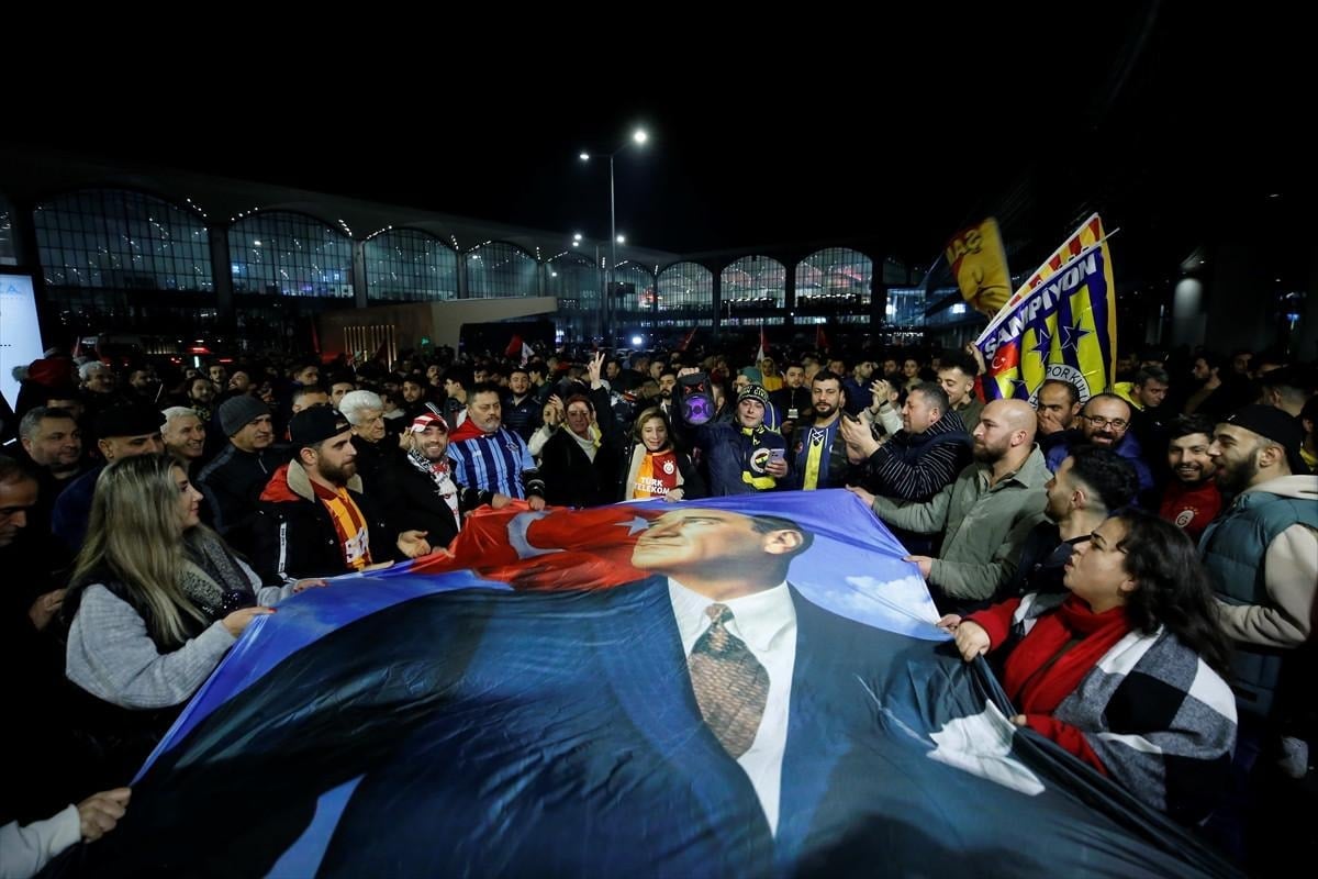 Kafileyi bekleyen taraftarlar, ‘Türkiye’ ve ‘Mustafa Kemal Atatürk’ tezahüratları yaptı.