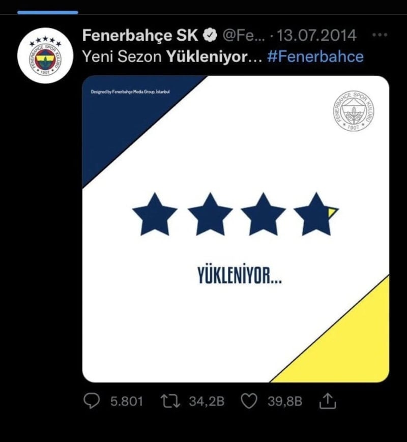 Yıllar önce Fenerbahçe'nin Twitter hesabından yapılan, '4. yıldız yükleniyor' paylaşımı ise bir kez daha gündeme geldi.