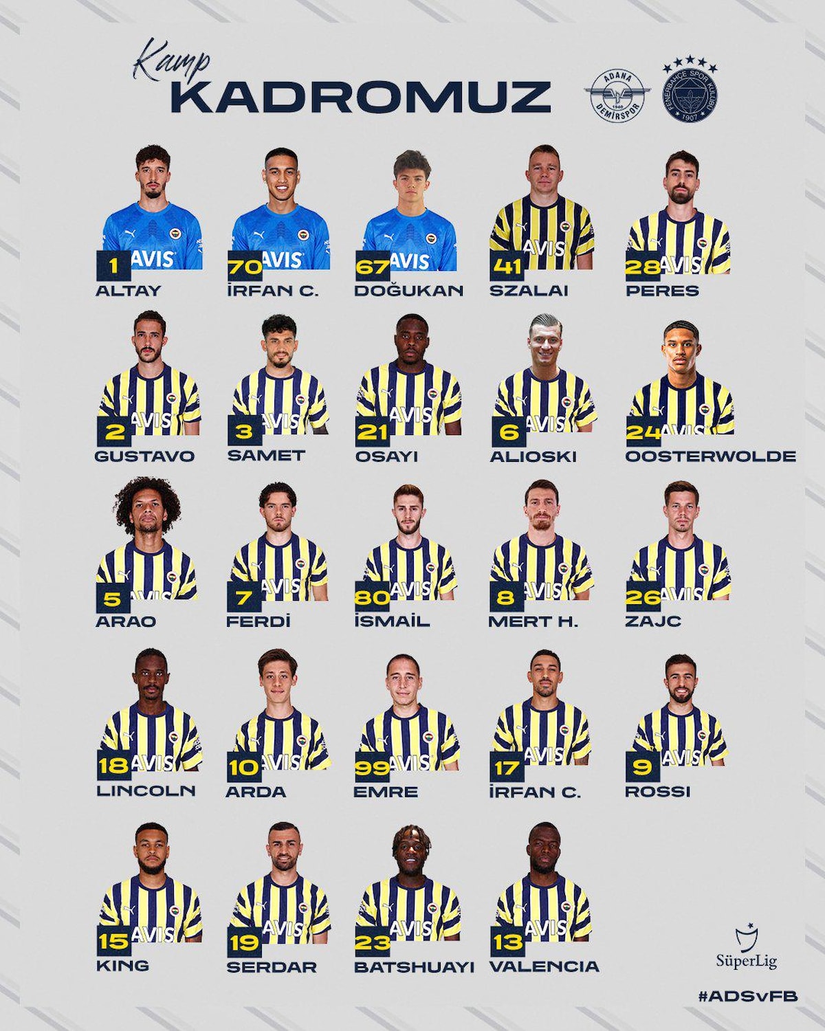 Altay Bayındır, İrfan Can Eğribayat, Doğukan Demir, Attila Szalai, Luan Peres, Gustavo Henrique, Samet Akaydın, Bright Osayi-Samuel, Ezgjan Alioski, Jayden Oosterwolde, Willian Arao, Ferdi Kadıoğlu, İsmail Yüksek, Mert Hakan Yandaş, Miha Zajc, Lincoln Henrique, Arda Güler, Emre Mor, İrfan Can Kahveci, Diego Rossi, Joshua King, Serdar Dursun, Michy Batshuayi, Enner Valencia