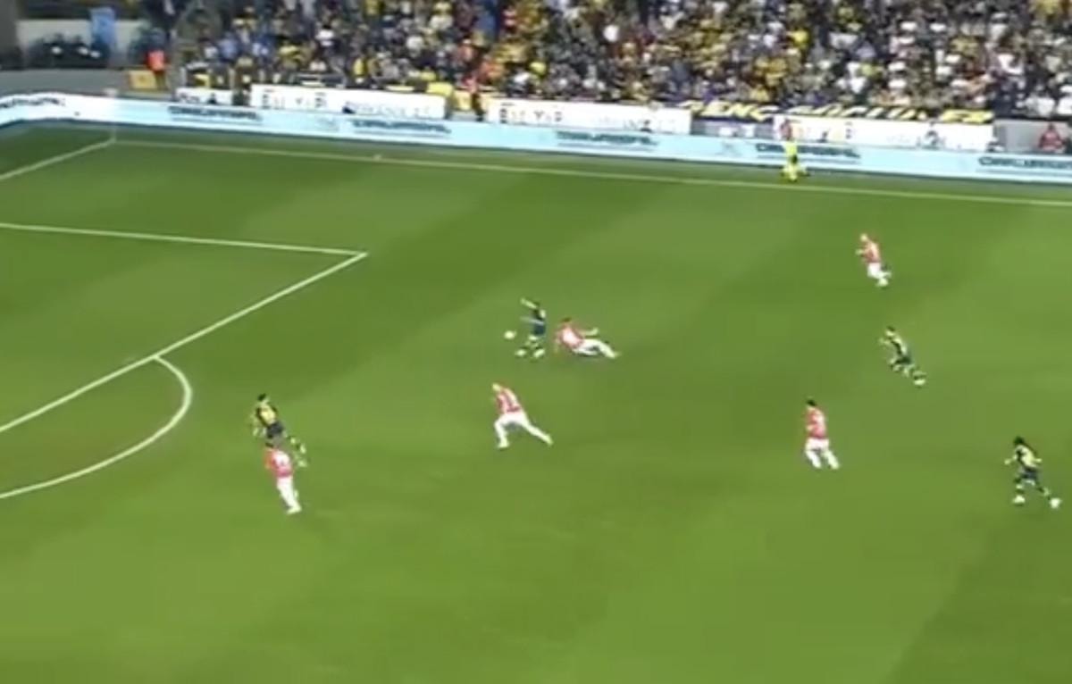 Dzeko'nun kaleciyle karşı karşıya kalacağınını düşünen sarı-lacivertli futbolcular hakeme kırmızı kart itirazında bulundu.