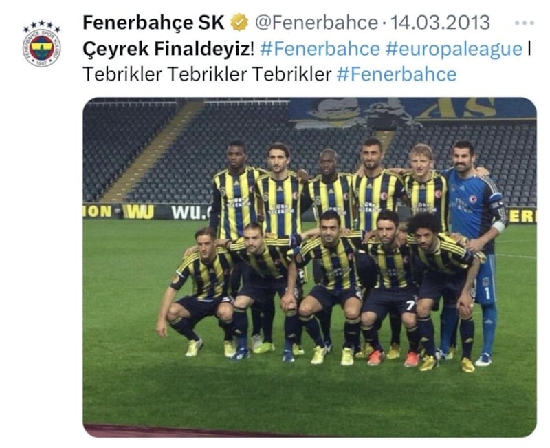 Öte yandan tarihler 14 Mart 2013 tarihini gösterdiğinde Fenerbahçe, UEFA Avrupa Ligi 3. tur rövanş maçında Viktoria Plzen ile 1-1 berabere kalmıştı.