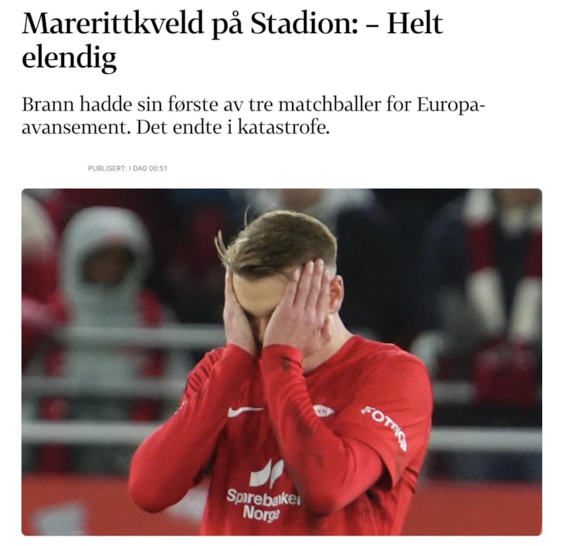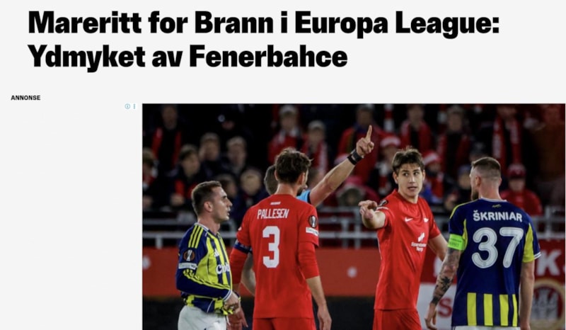 "Norveç için Avrupa'da yeni bir düşüş dönemi. Brann'ın Fenerbahçe yenilgisinin ardından Norveç, UEFA sıralamasında Danimarka'nın gerisinde kaldı ve UEFA'nın Ülke Puanı'nda 14. sıraya geriledi."