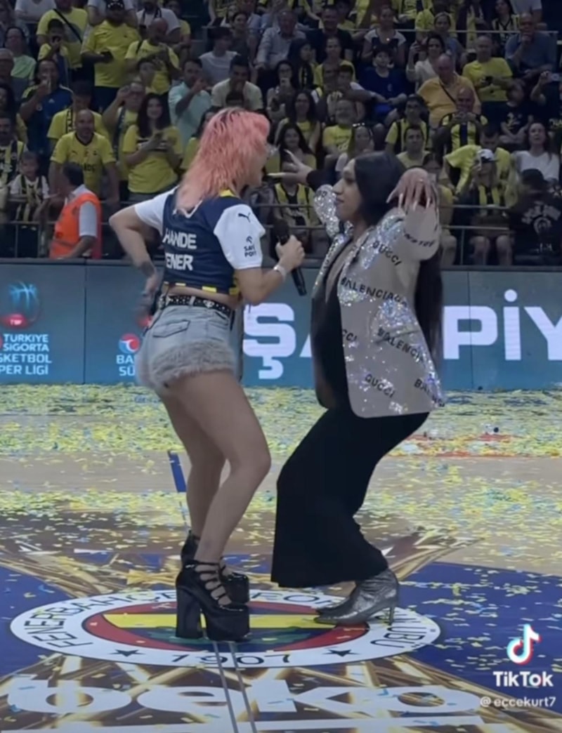 Şampiyonluk kutlamasında yer alan Fenerbahçeli şarkıcı Hande Yener'in arkasında dans eden bir isim sosyal medyada gündeme oturdu.